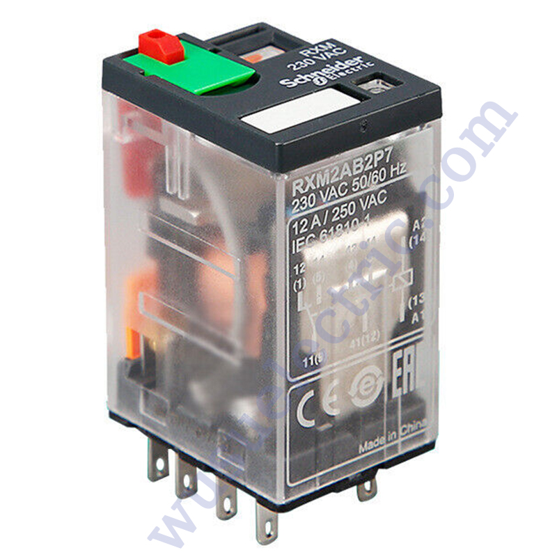Miniature plug in relay, Harmony, 12A, 2CO, with LED, lockable test button, 230V ACw